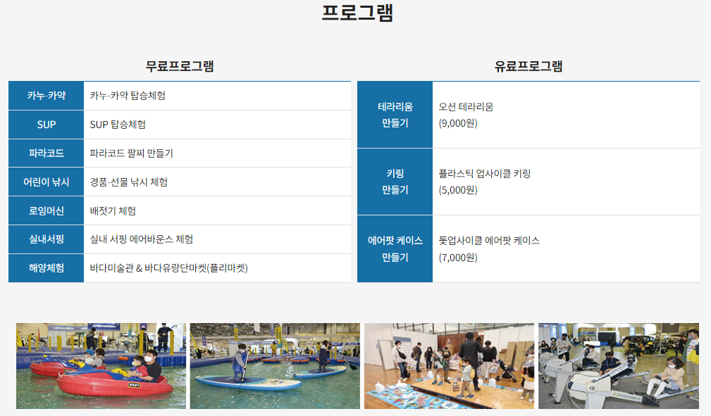 ▶ 부대행사 : 비즈니스 상담회, 올해의 보트상 시상식, 보트 무료 탑승, 서핑 등 해양레저 체험, 세미나 등