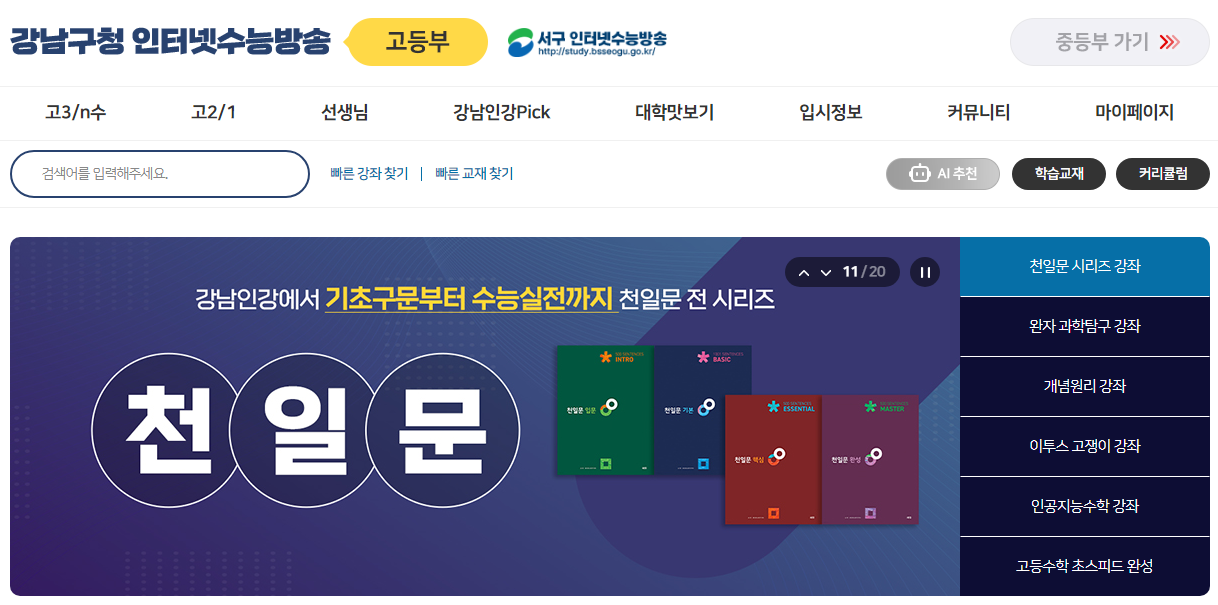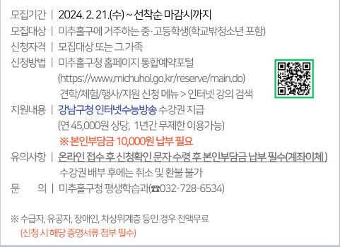 지원내용 : 강남구청 인터넷수능방송(강남인강) 연간 수강권 지원