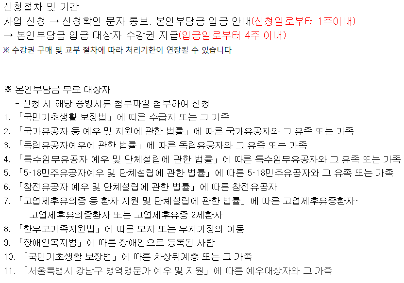 수강권 지원 : 신청일 기준 다음달 15일 이내 개별 문자 전송