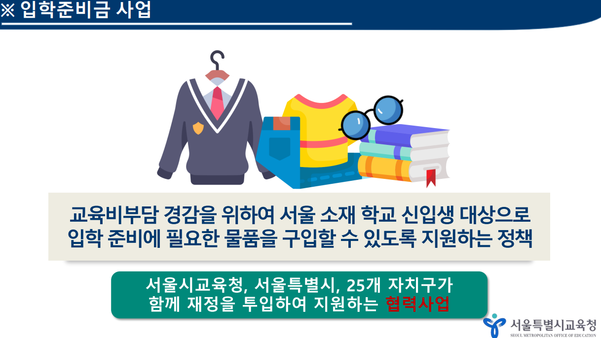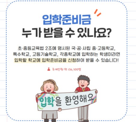 초, 중, 고 신입생을 대상으로 교육청에서 입학지원금 신청을 받는다고 합니다.