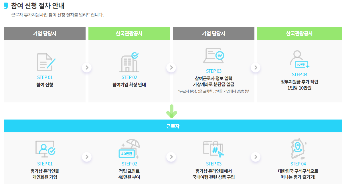 근로자 휴가지원사업은 정부와 기업이 함께 근로자의 국내 여행경비를 지원하는 사업입니다.